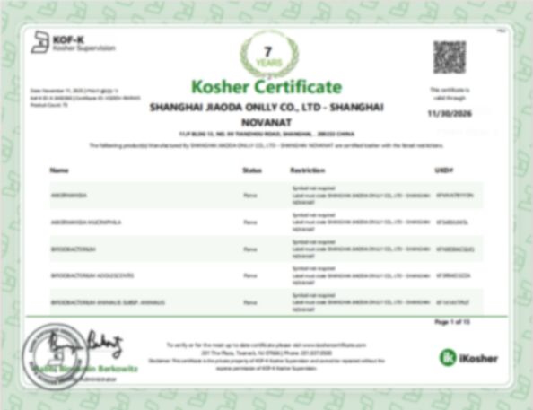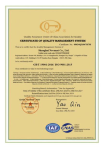 Novanat tiene una capacidad anual de más de 1200 toneladas, involucrando casi 400 tipos de extractos de plantas y 30 tipos de polvo de probióticos. Como un proveedor espléndido y confiable, hemos proporcionado productos de alta calidad, controlados por un sistema de calidad certificado (ISO9001, ISO22000, FSSC22000 y cGMP) y certificados por KOSHER y HALAL, para un gran número de países en el mundo. Además, nuestras patentes autorizadas de propiedad exclusiva relacionadas con el proceso de extractos de plantas, cepas y productos de probióticos sientan las bases para la producción y venta de productos.
