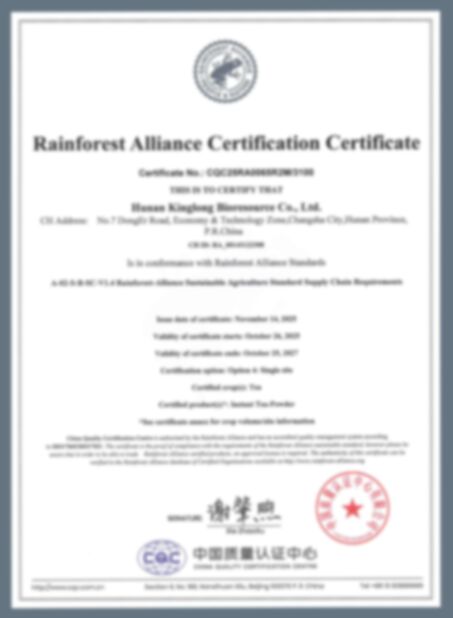 | Estándar: | Rainforest Alliance Certification Certificate |